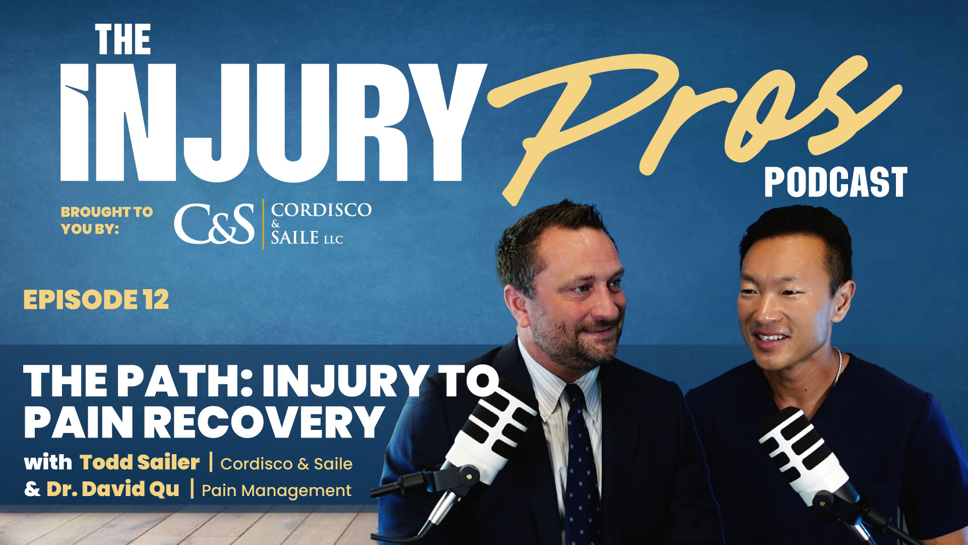 On this episode of The Injury Pros Podcast, Todd Sailer of Cordisco & Saile welcomes Dr. David (Huaguang) Qu, a Harvard and Penn trained Philadelphia-based pain management expert. Together, they dive into the complex medical journey many injury victims face, from the initial trauma to long-term healing. Dr. Qu discusses cutting-edge therapies, how legal timelines and medical recovery intersect, and the human side of treating pain.